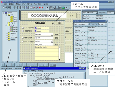 GUI操作によるプログラミングと、業務アプリケーション開発に特化した各種コントロールにより、 ニーズに合ったシステムを効率よく開発できます。